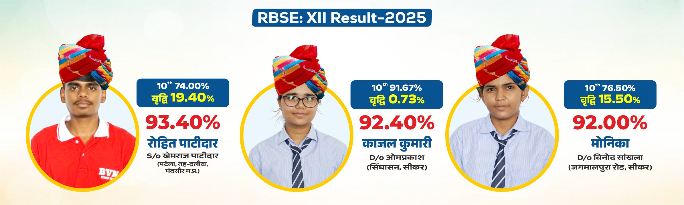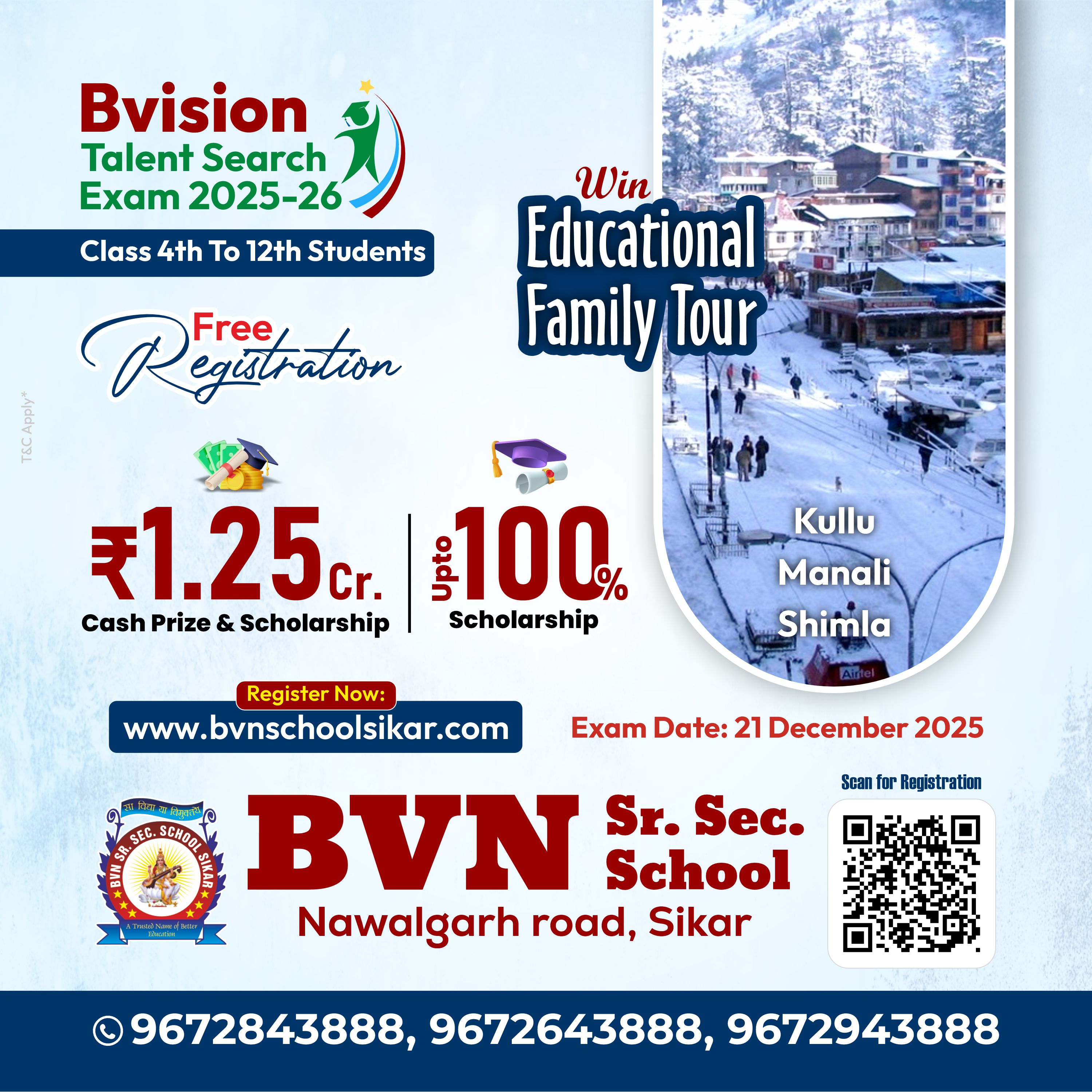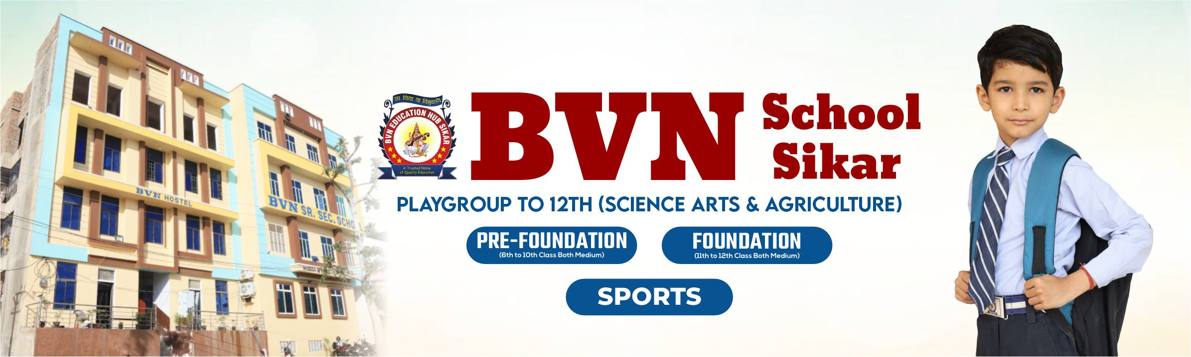 BVN School is a leading English & Hindi medium school in Sikar, Rajasthan. The school aims at developing the moral, intellectual, and physical qualities of the children, moreover, instilling in them a strong social sense. The school is fully aware of the great responsibility of laying down the very foundation of the child's Intellectual formation. Hence the curriculum has been arranged so efficiently as to achieve this objective.